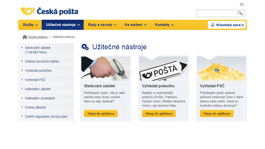 Při tvorbě nové grafické podoby webu byl kladen velký důraz na funkčnost, použitelnost a přístupnost nových stránek. Neméně pozornosti jsme soustředili na logiku navigace, kde se nám podařilo vhodně kombinovat hierarchickou, kontextovou a drobečkovou navigaci s produktovým rozcestníkem. Dalšími plusy byl také vyšší uživatelský komfort, fulltextové vyhledávání po celém webu či systém pro zasílání novinek. Cílem webové prezentace bylo představit zákazníkům celkový přehled nabízených produktů a služeb, podat informace o jednotlivých pobočkách či možnost sledování zásilek. Nově došlo také k oddělení informací týkajících se online elektronických služeb. Ty jsou situovány do virtuální pobočky, pro kterou jsme rovněž připravovali grafický návrh a HTML šablony.