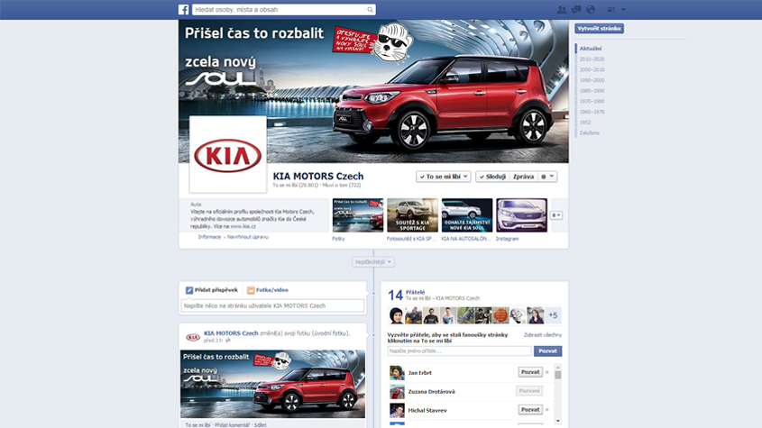 MEDIA FACTORY nabízí své marketingové služby rovněž v oblasti sociálních sítí, které se v poslední době stávají mezi fanoušky a uživateli velmi vyhledávanými. Společnost KIA na nich pochopitelně nemůže chybět a pro správu svých sociálních síti si vybrala právě MEDIA FACTORY. Spolupráci jsme odstartovali v květnu roku 2013 a od té dobry spravujeme pro KIA profily na síti Facebook, Twitter, Google +, YouTube, Flickr, Instagram a LinkedIn. Správa sociálních sítí není jen o aktualizaci příspěvků, vkládání fotografií a udržování kontaktu s jejich návštěvníky a fanoušky. Na práci se sociálními sítěmi se u nás podílí mnoho profesionálů od copywritera, přes grafika, až po analytika. Výsledkem jsou pro nás neustále rostoucí počty spokojených fanoušků, se kterými udržujeme vřelý vztah a rovněž jim poskytujeme odborné konzultace na jejich dotazy. Díky kvalitní práci se nám podařilo vybudovat silnou základnu příznivců značky KIA, která vyzařuje vysokou mírou angažovanosti a spolupodílí se tak na tvorbě obsahu. V rámci sociálních sítí poskytujeme také analytickou podporu včetně vedení reklamních kampaní, které jsou v našich rukou řízeny s co největší efektivitou.
