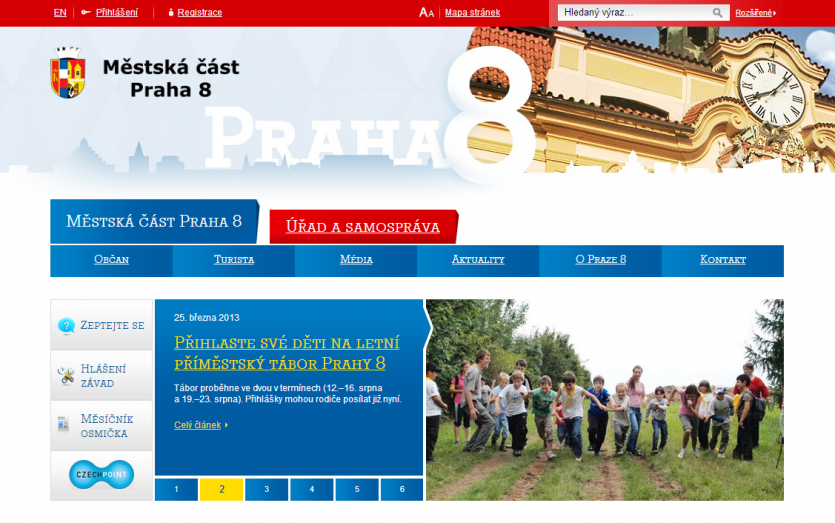 Stránky městské části Praha 8, pro které jsme v MEDIA FACTORY připravovali kompletní design, jsou mezi sobě rovnými hodnoceny jako jedny z nejlepších.